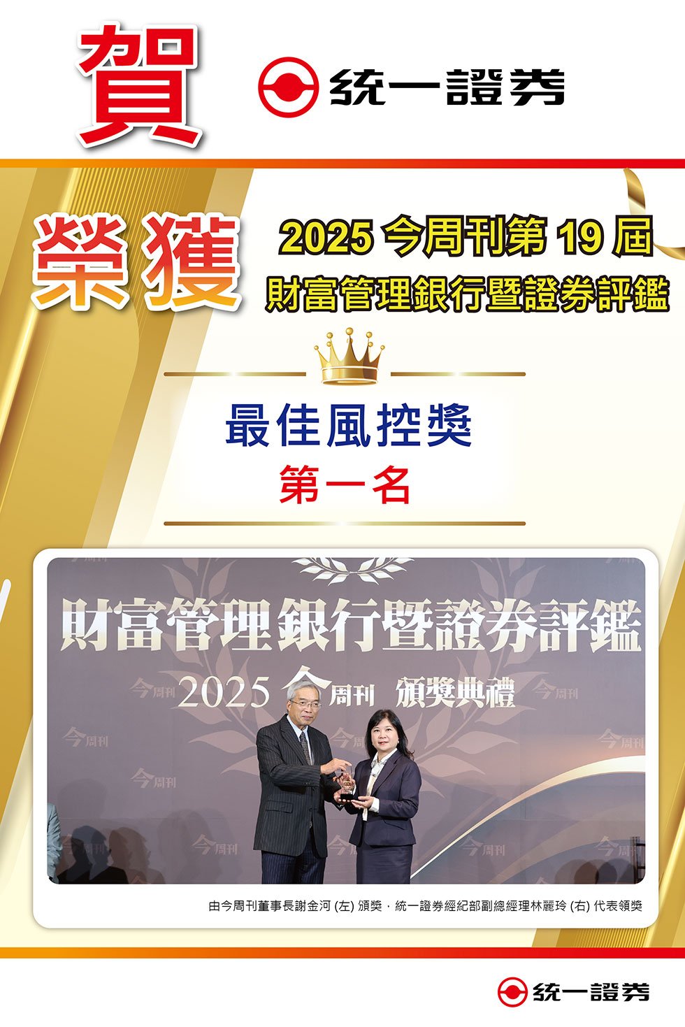- 2025 第19屆財富管理銀行暨證券評鑑最佳風控獎