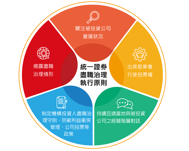 統一證券身為機構投資人,應落實盡職治理原則並履行相應責任。本公司已遵循證交所發布之《機構投資人盡職治理守則》及金管會《新版公司治理藍圖》中「提 升機構投資人盡職治理守則之簽署家數及其盡職治理資訊揭露品質」之目標,編製出版本年度之「機構投資人盡職治理報告」,公開揭露相關資訊。
