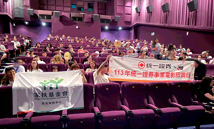 2024 年暑假統一證券首度舉辦「員工電影欣賞日」,於全台威秀影城包廳放映,邀請員工及其眷屬、家扶基金會 31 名學童及社工老師共同參與。活動 精選多部適合闔家觀賞之電影,全台共舉辦 9 場次,累計 1,252 人次參與。
