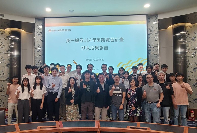統一證券持續深耕青年人才培育,日前舉辦「114年暑期實習計畫」期末成果發表。實習生來自臺灣大學、政治大學、臺灣科技大學、中山大學、中正大學、清華大學及倫敦帝國理工學院等七所學校,歷經兩個月扎實的專案歷練後,展現多元成果。
