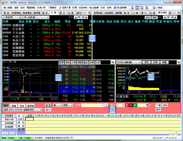 綜合報價單元,提供使用者兩個多功能報價單元,同時監看不同商品即時資訊。