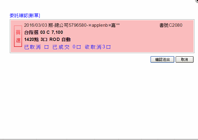 按鈕,系統彈出刪單小視窗,可以將該筆委託尚未成交的數量進行「刪單」