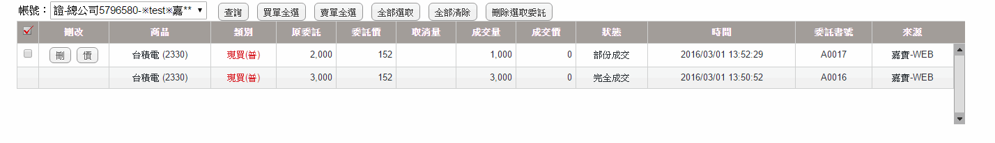 證券交易-委託回報
