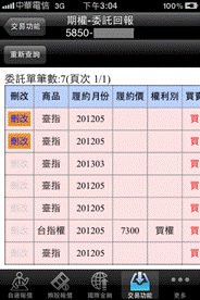 可查詢期權委託回報,及進行委託單之刪單/改量/改價