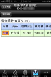 可查詢期權帳戶未平倉資料及進行留倉部位轉平倉