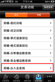 選擇【期權】類>【期權-出入金查詢】