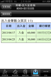 可查詢期貨帳戶內出入金資料