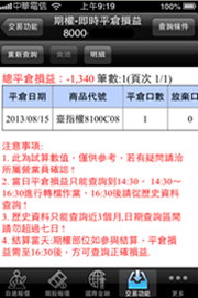 可查詢期貨帳戶內即時平倉損益資料
