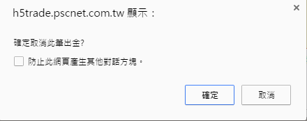 以滑鼠左鍵點擊"取消"鈕,跳出 確定取消出金視窗。