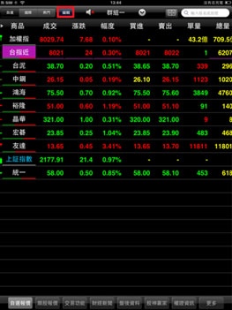 於自選報價頁面,點選右上方【編輯】鈕