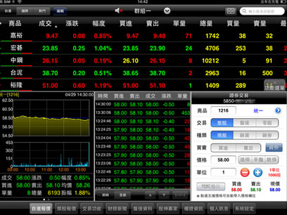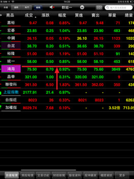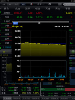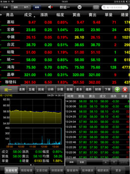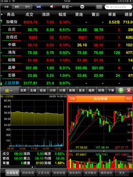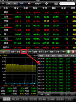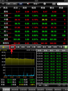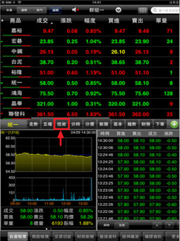 橫置時,個股資訊視窗可觀看三項功能。畫面如上:
