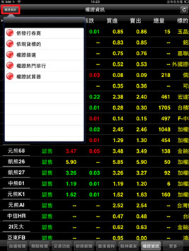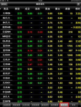 點選下方功能選單【權證資訊】,即可觀權證相關功能
