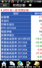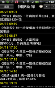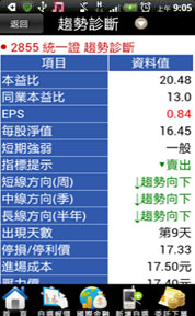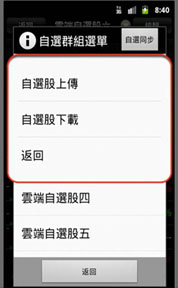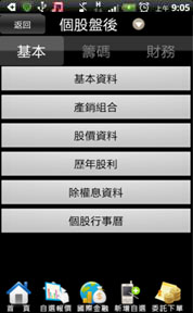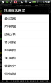 彈出個股功能選單,可選取欲觀看之個股資訊