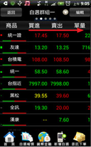 第二頁報價欄位為:名稱、買進、賣出、單量