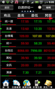 一、預設第一頁報價欄位為:名稱、成交、漲跌、幅度