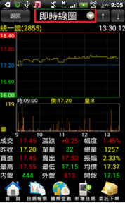 二、於觀看商品資訊時,點選上方「即時線圖」處,即可選擇其他功能