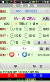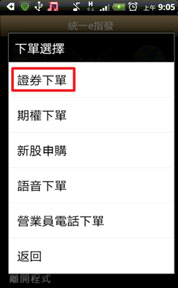 選擇【證券】交易功能