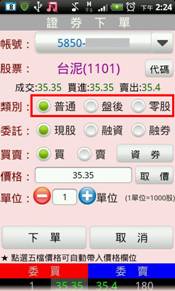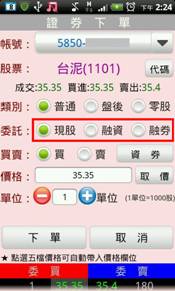 選擇委託別:現股/融資/融券