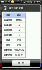 點資券按鈕可以查詢完整的資券成數配額