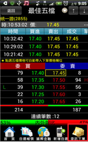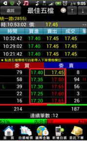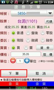 五檔報價畫面可以連動下單夾,並帶入價格