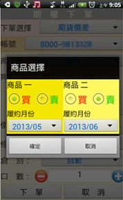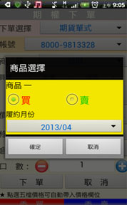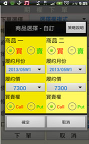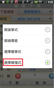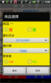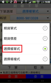 於選單選擇買賣別/履約月份/履約價/買賣權