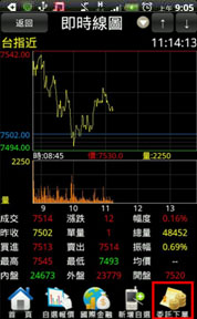 於任一期、權商品資訊功能點選右上角【功能即時走勢】