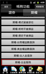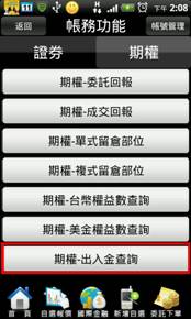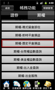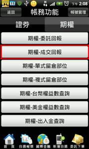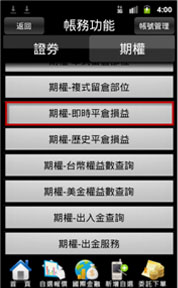 可查詢期權帳戶未平倉資料及進行留倉部位轉平倉