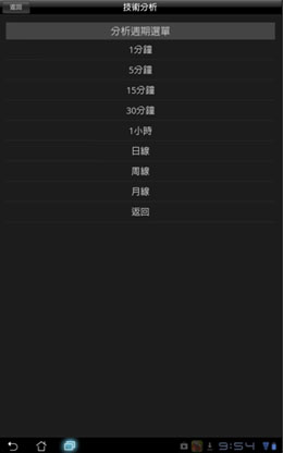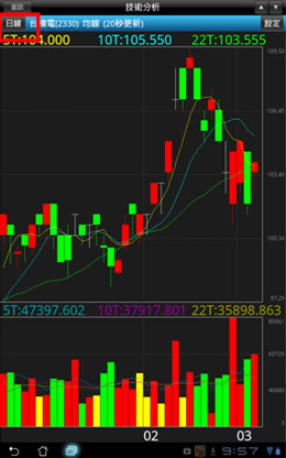 可由彈出之選單切換週期為1分/5分/15分/30分/一小時/日/週/月線