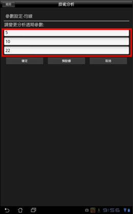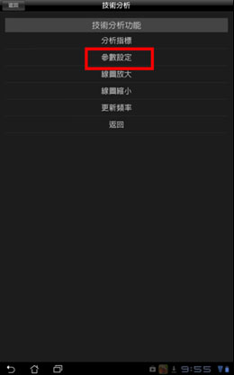 .點選右上方【設定】鈕,可進入指標參數設定畫面