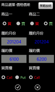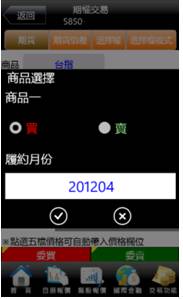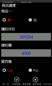 於選單選擇買賣別/履約月份/履約價/買賣權