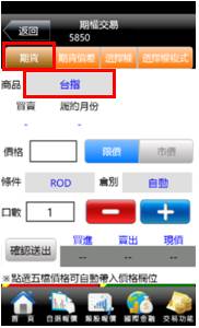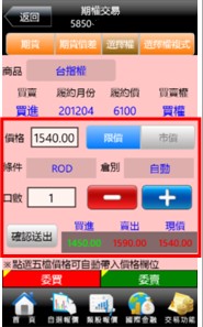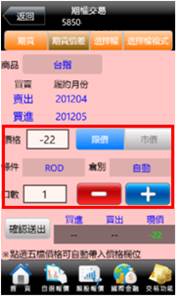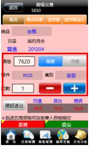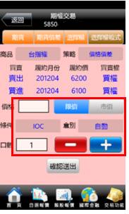 選擇價格/條件/倉別/口數。按【確認送出】即可將委託單送出