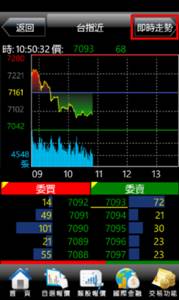 於任一期、權商品資訊功能點選右上角【即時走勢】