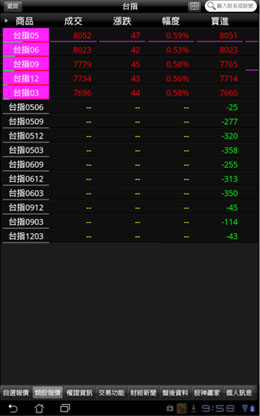 即可觀看所選取標的之期貨報價畫面